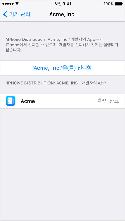 iOS는 사용자 데이터를 보호하기 위해 엄격한 보안 정책을 시행하고 있습니다. 이 정책은 인증되지 않은 개발자가 만든 앱이 사용자 기기에 설치되는 것을 방지합니다. 따라서, 기업용 앱을 설치하려면 해당 개발자를 신뢰해야 합니다.
