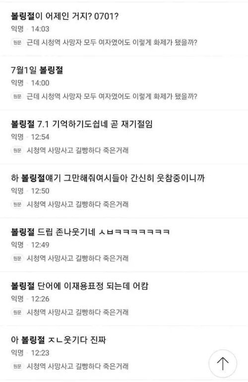 이와 같은 조롱은 사고 피해자들이 남성이라는 이유로 더욱 극단적으로 나타났습니다. 커뮤니티 회원들은 "사망한 사람들이 전부 남자라 다행이다"라는 발언을 서슴지 않았으며, 이는 피해자와 유족들에게 2차 가해를 가하는 행위로 여겨집니다. 특히, '볼링절'이라는 표현이 확산되면서 많은 20대, 30대 여성들이 유족들을 향해 지속적인 조롱을 멈추지 않고 있습니다.