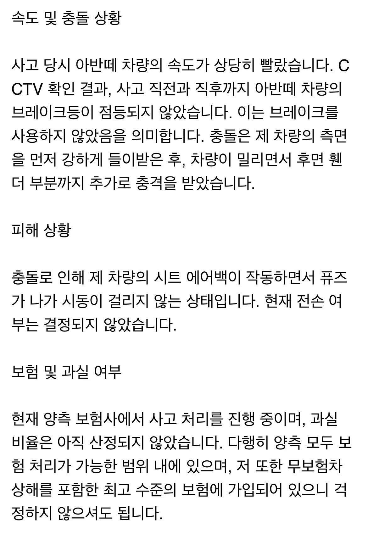 1. 사고 개요와 차주의 입장