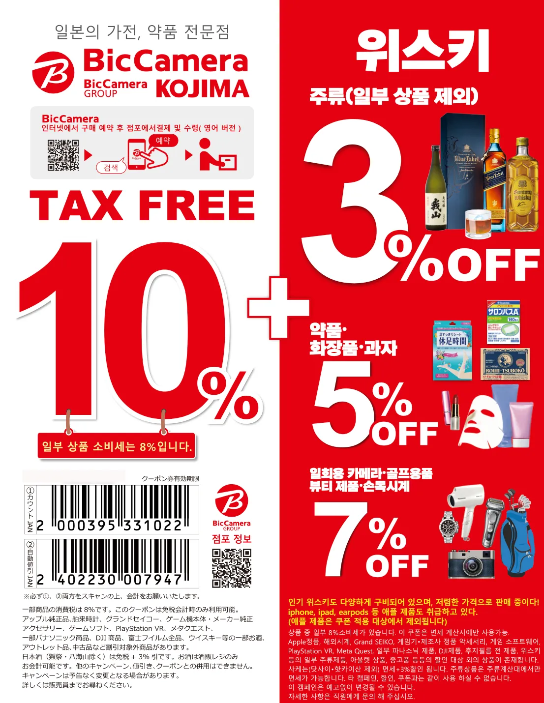 3) 빅카메라 쿠폰 사용 가능(면세 카운터에서 계산 시 제시).