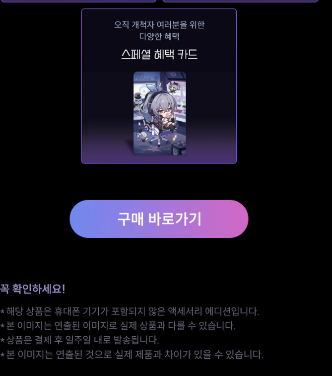 갤럭시 S24+ 붕괴 스타레일 은랑 에디션은 한정판이라 처음에 많이 버벅거려 구매를 못할 거 같아 걱정이 많았습니다. 하지만 제가 구매한 시간이 12시 09분 대였고 PC에서 구매하였습니다. 오류페이지가 몇 번 은 뜨기는 했지만 구매하는 데는 순조로웠습니다. 운이 좋게도 롯데카드를 소지하고 있어 무이자 6개월도 가능하여 경제적 부담도 조금이나마 덜어주어 결제금액에도 할부를 이용하였습니다. 당근으로 구매를 몇 번 망설였는데 이렇게 2차 판매를 구매완료하게 되니 얼른 배송이 왔으면 좋겠습니다. 지금까지 긴 구매후기 글을 읽어 주셔서 감사합니다.